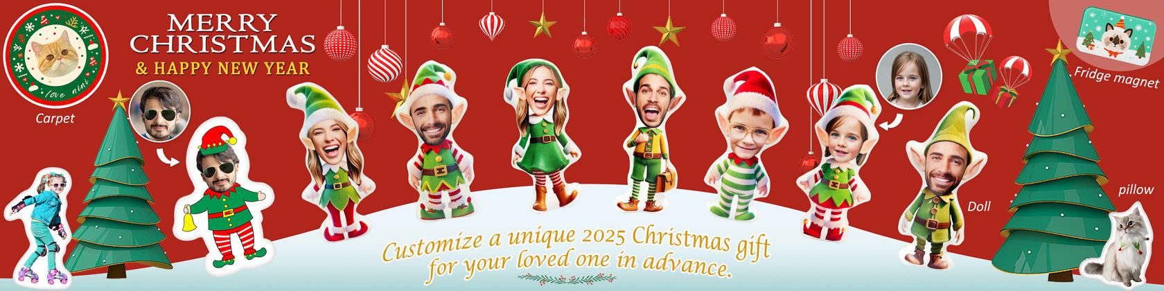Custom Elf Doll Face Pillow, Personalize Photo Pillow, Girl Christmas Gift, Christmas 3D Elf Toy,Person Face Pillow,Custom Elf Photo Cushion